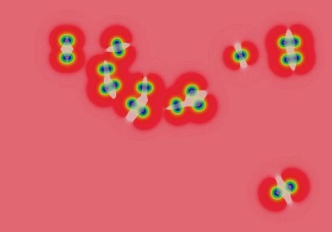 Spot solitons double like bacteria and fill the space. Note slow drift to attain optimal packing, which is reached after 500,000 or more tu (only 57,600 tu shown here)