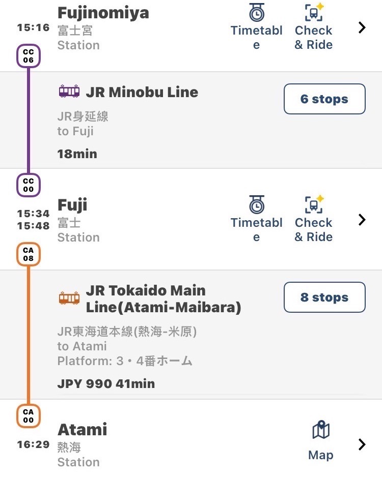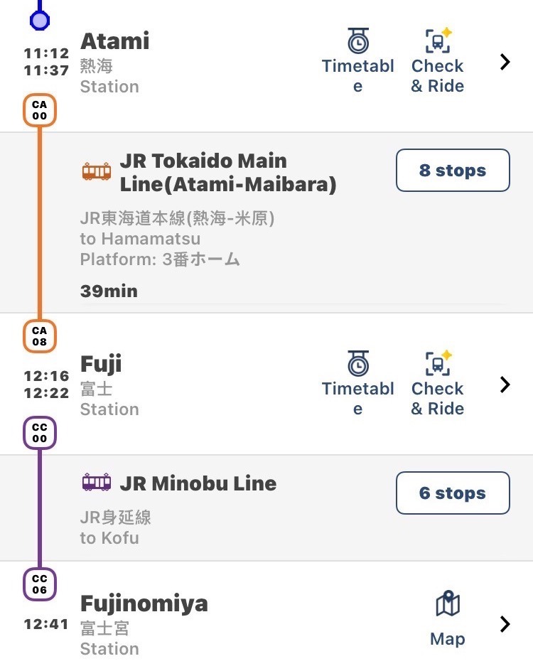 (You may have noticed that after Atami the Shinkansen stops at a "Shin-Fuji" station, but that station doesn't connect well with the trains going to Fujinomiya.)