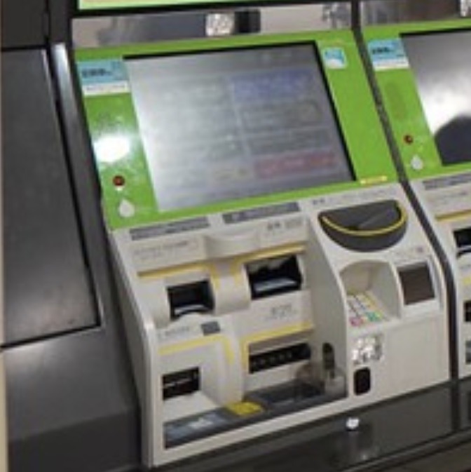 There are also machines that are blue instead of green, and they work the same way — but the ones we've used at Shinagawa were green.